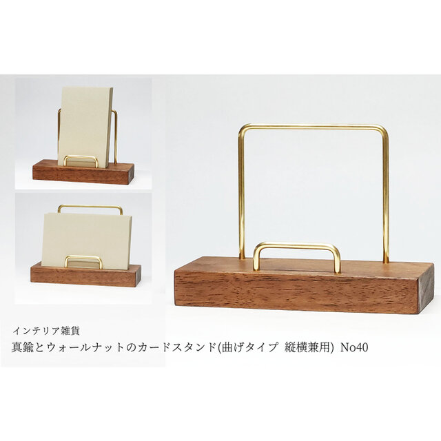 真鍮とウォールナットのカードスタンド(曲げタイプ 縦横兼用) No40