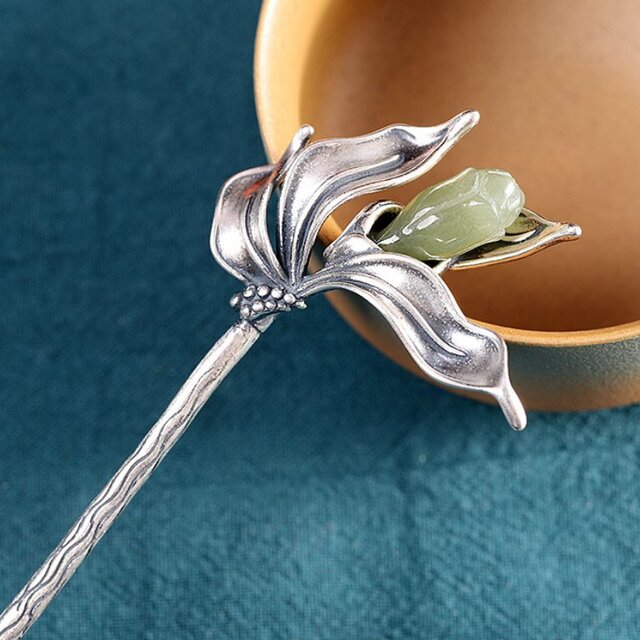 木蓮の花をテーマにしたかんざしは、風に揺れる美しい姿を表現しています。アクセントとして、ヒスイの花を添えました。そのデザインは、自然の優雅さと調和を象徴しています。細部にまでこだわった職人技が光り、見る人の心を惹きつけます。かんざしを髪に挿すと、まるで春の風が優しく吹き抜けるような感覚を覚え、装う人に華やかさと静けさを同時に与えます。この作品は、伝統とモダンが美しく融合した逸品であり、装いに特別な意味と個性を添えることでしょ