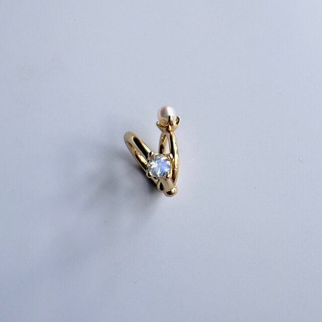 小粒淡水パールとムーンストーンを組み合わせたイヤーカフです。自分好みの天然石をカスタマイズオーダーになります。