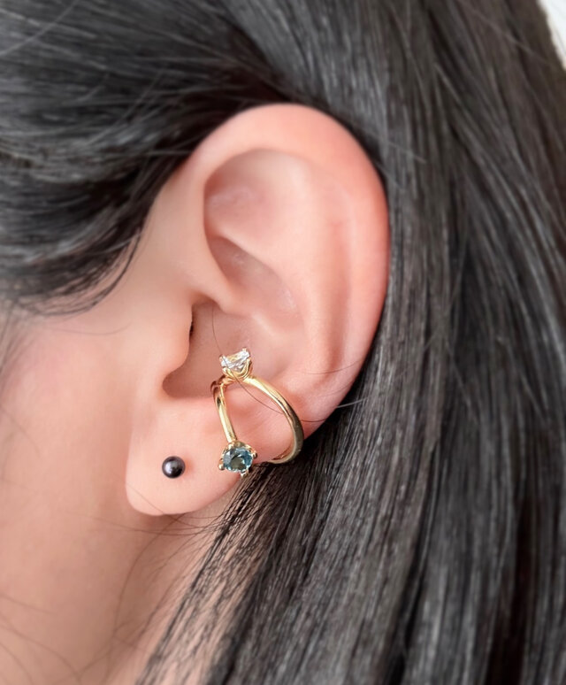 #誕生石 #イヤーカフ #片耳 #2粒イヤーカフ #誕生日 #通年 #1粒ジュエリー #天然石 #ゴールド #シルバー #上品 #カジュアル #おしゃれ #お出かけ #デイリー #レディース #ダブルライン #プチギフト