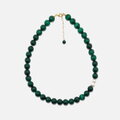 深みのあるグリーンが印象的な高品質なマラカイト(10mm) に、やわらかな艶の淡水パールを添えた、クリーンでモダンなビーズネックレスです。天然石の表情を活かすため、装飾を重ねすぎず、ビーズのサイズ感や全体のリズム、パールとゴールドパーツの配置まで丁寧に整えました。