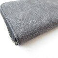 通帳もスリムに入る♪《牛革》L字ファスナーロングウォレット・ダークグレー・スレ加工シュリンク・023