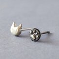 【受注制作】金属アレルギー対応/猫/肉球/燻加工/ぷっくり/小粒/小さい/アシンメトリー/スタッド/ピアス/イヤリング