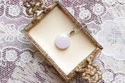 三種類の淡い淡いパープルのマーブル模様が、まるでなめらかな陶器を思わせるペンダント。