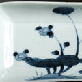 濃く暗めの色味の呉須での粋な草花の絵付けで