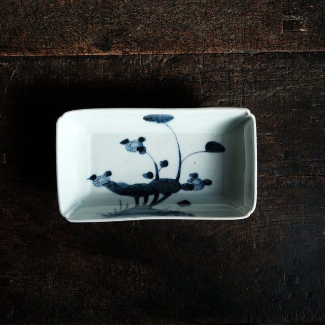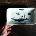 成化年製◆古伊万里 花文染付長方皿 刺身皿 骨董・antiques 古民家 古美術 江戸後期 個体A