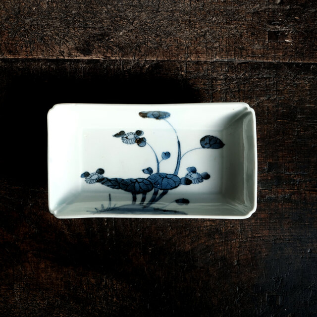 成化年製◆古伊万里 花文染付長方皿 刺身皿 骨董・antiques 古民家 古美術 江戸後期 個体B