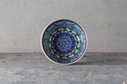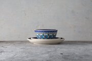 1980年代にポーランドの陶都ボレスワヴィエツで作られたセラミカ・アルティスティッチナ No.835シリーズは、ポーランド陶器の伝統を鮮やかに映し出す逸品です。青いデイジーの花模様が職人の手描きで施され、周囲を渦巻き文様が彩ります。サラダボウルと2枚のプレートが揃い、統一感のある美しさを食卓に添えます。