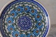 Blue daisies in bloom-an artisanal set that turns your dining table into a garden of timeless beauty.