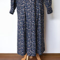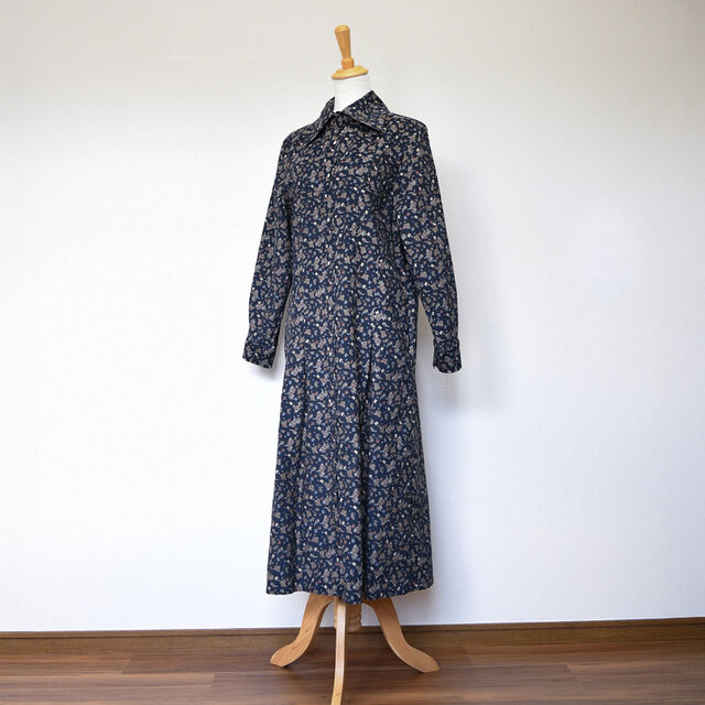 【完全一点物】プリーツタックワンピース(ネイビーペイズリーコーデュロイ)