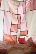 ※ピンクのグラデーションの全体の半分ほどが、植物染色布で、茜染とすおう染めとなります。