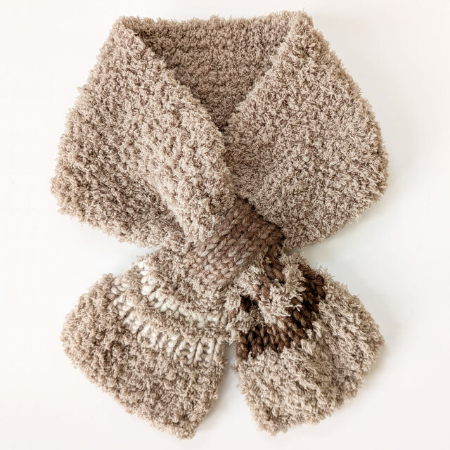 ポリエステル100%の毛糸で編んだティペット型のネックウォーマーです。