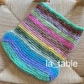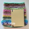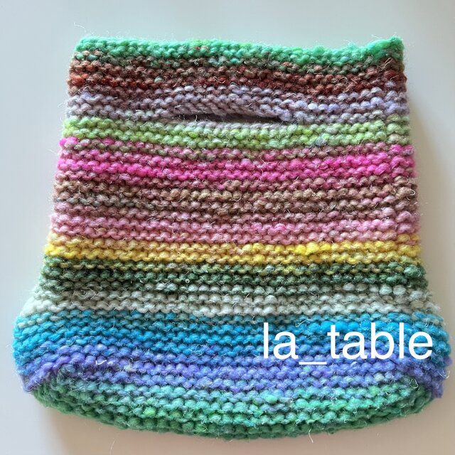 カラフルな糸をぐるぐると編み進めてバッグに仕立てました。