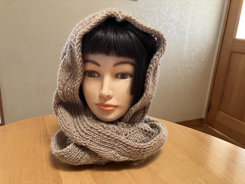 マフラーとフードを合わせたイメージでバラクラバに仕上げてあります