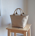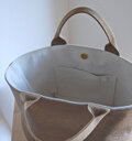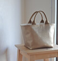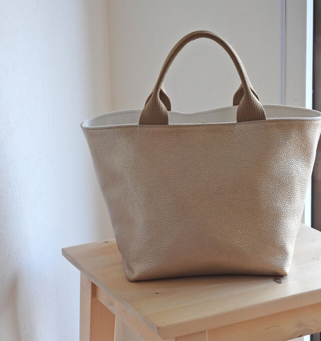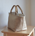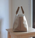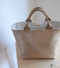作品が到着いたしました。 優しいラテグレージュ色と細いレザーハンドルが、とても上品でフェミニンな印象の素敵なバッグですね。 季節を問わず活躍してくれる事間違いありません。ありがとうございました。