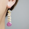 【1点限定】「果実日和」イエローオパール ピンクオパール ルビー ロングピアス イヤリング 14kgf 樹脂 ノンホールピアス