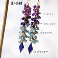 【1点限定】「蒼の余韻」アメジスト ラピスラズリ アクアマリン ロングピアス イヤリング 14kgf 樹脂 ノンホールピアス