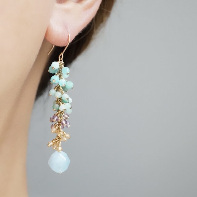 【1点限定】「そよ風の色」アマゾナイト エメラルド アメジスト シトリン アクアマリン ロングピアス イヤリング 14kgf