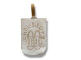 ダンスや体操の発表会などをイメージした靴のデザインとフランス語で靴を意味する「chaussure」の文字をバッグ本体やハンドル部分のカラーと響きあうようにステッチ風にハンドペイントしました。