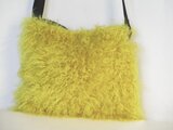 くるくるカールした黄色のムートン、後ろは羊革です。