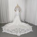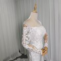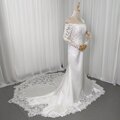 ウェディングドレス オフショルダー 上品レース 長袖 華やかなトレーン デザイン感 くるみボタン 結婚式 前撮り