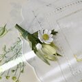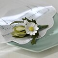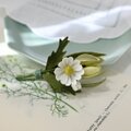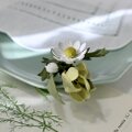 イエローグリーンをアンティーク色に染めたチューリップに、ノースポールのお花を添えたコサージュを布花に仕立てました。