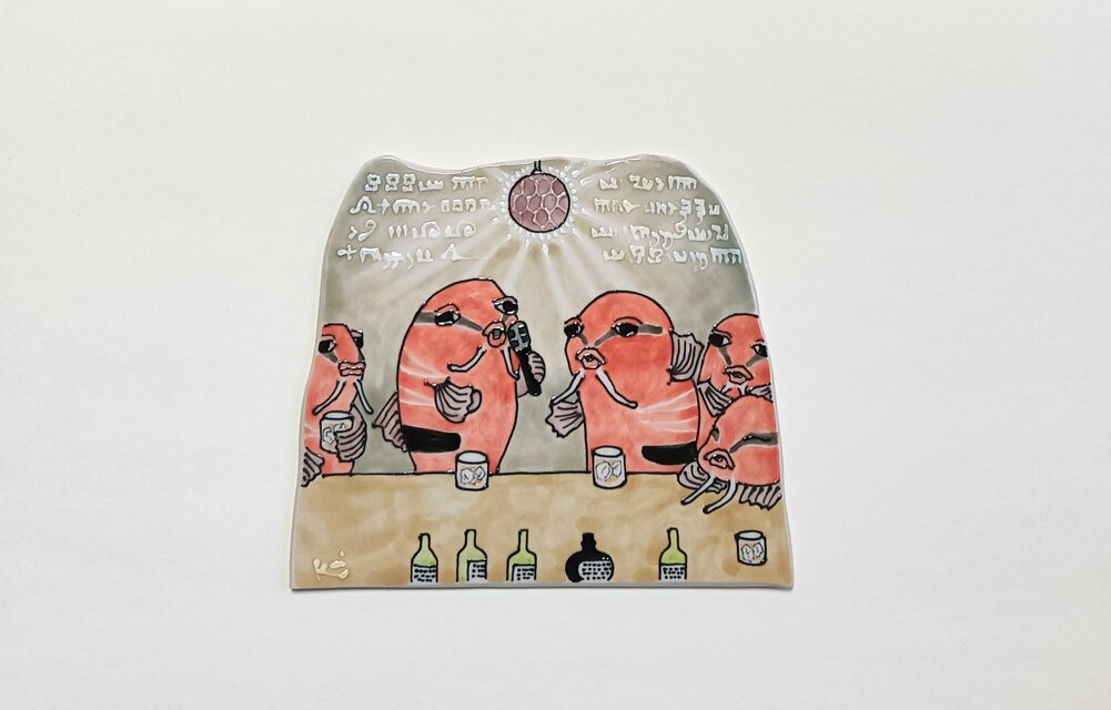プレートに絵付けし、焼成。