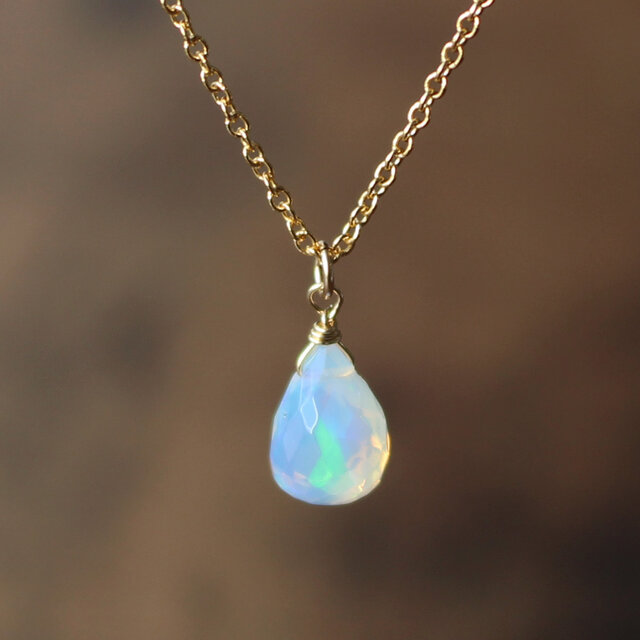 ✨10月誕生石✨ プレシャスオパール<ドロップ・ブリオレット>のネックレス(K14GF)