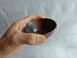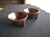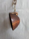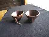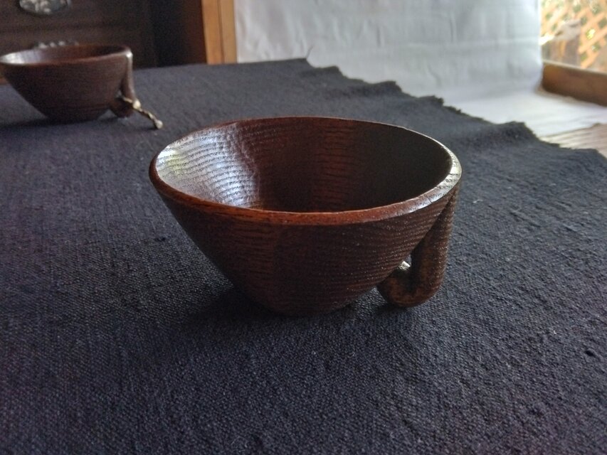 タモの木を刳り、拭き漆で仕上げています。持ち手のような所の穴に、