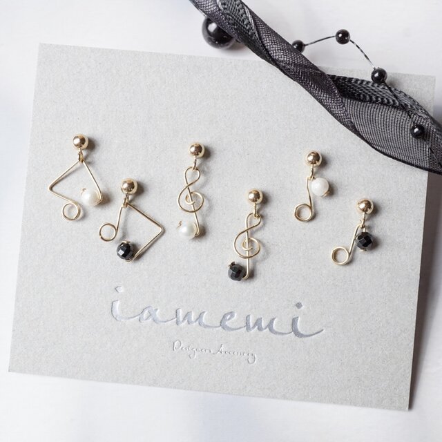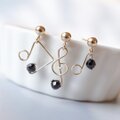 【ピアス/イヤリング】「小さな音符」ト音記号 パール ブラックスピネル 14kgf K14 樹脂ピアス ノンホールピアス