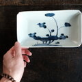 成化年製◆古伊万里 花文染付長方皿 刺身皿 骨董・antiques 古民家 古美術 江戸後期 個体E【ニュー有り】