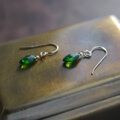 深緑に滴る雫をそのまま閉じ込めたようなクロムダイオプサイドを、繊細なピアスにあしらいました。