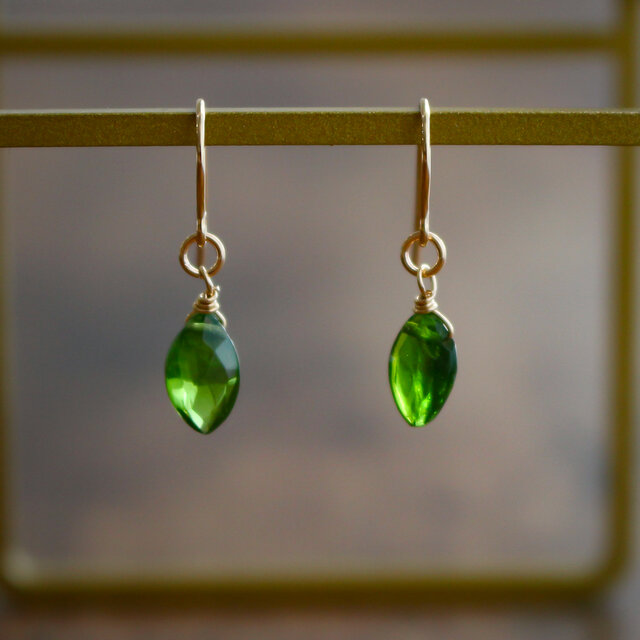 ✨深緑の一滴✨ クロムダイオプサイド<マーキスカット>のピアス(K14GF)