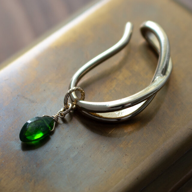 深緑に滴る雫をそのまま閉じ込めたようなクロムダイオプサイドをイヤーカフにしました。