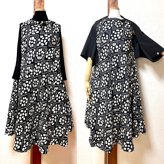 絞りのフレアードレス遅くなりました 早速着てみました 私重ね着をするのが好きで…厚手セ-タ-の上に着てみました 絞り柄いいですね それに映像では分からなかった襟が変わっていて 着たときにとても綺麗に馴染みました ラインも長さも私にピッタリで嬉しくなりました 有難うございました