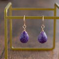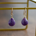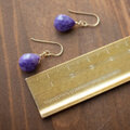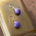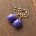 深い紫に白が溶け込むように揺らめく、チャロアイトをピアスにしました。