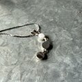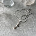 3連のボールがぶら下がるシルバートーンショートネックレス。