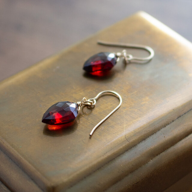 芳醇な赤が静かに映える、アローヘッド型のガーネットをピアスにしました。