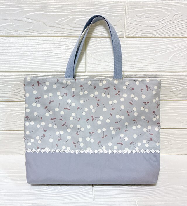☆切り替え部分にレースをつけた可愛いバッグです。