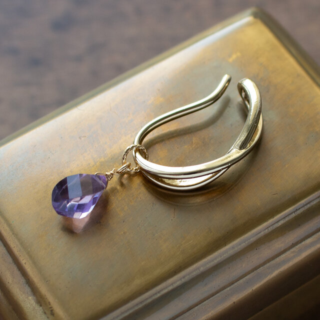 ✨2月誕生石✨ アメジスト<ツイスト・ブリオレット>のイヤーカフ(真鍮)