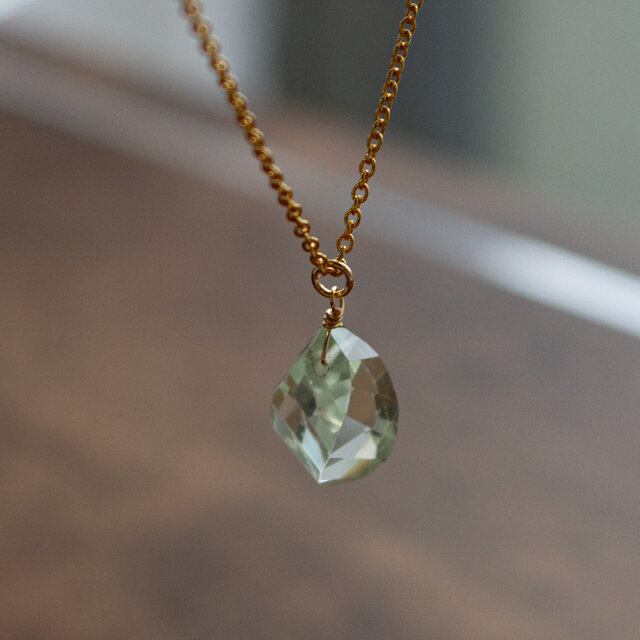 個性的なカットが目を引くグリーンアメジストをペンダントにしました。