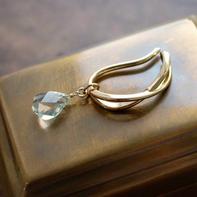 ✨2月誕生石✨ グリーンアメジスト<ツイスト・ブリオレット>のイヤーカフ(真鍮)