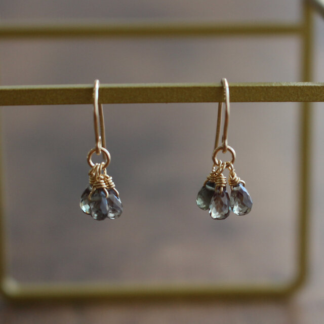 ✨光の加減で色が変わる✨ 1月誕生石・カラーチェンジガーネット<ドロップ・ミニ>のピアス(K14GF)