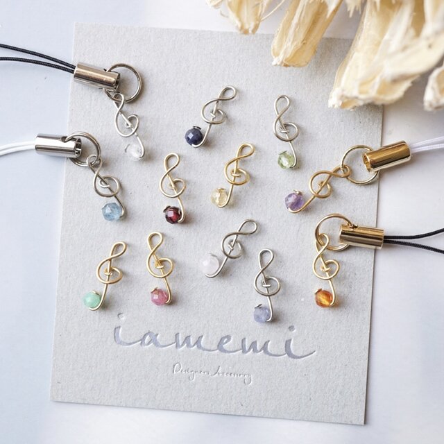 【選べる誕生石】ト音記号 ストラップ 音符 天然石 音楽 吹奏楽 音楽会 発表会 推し活 メンカラ ギフト プレゼント