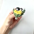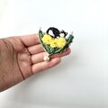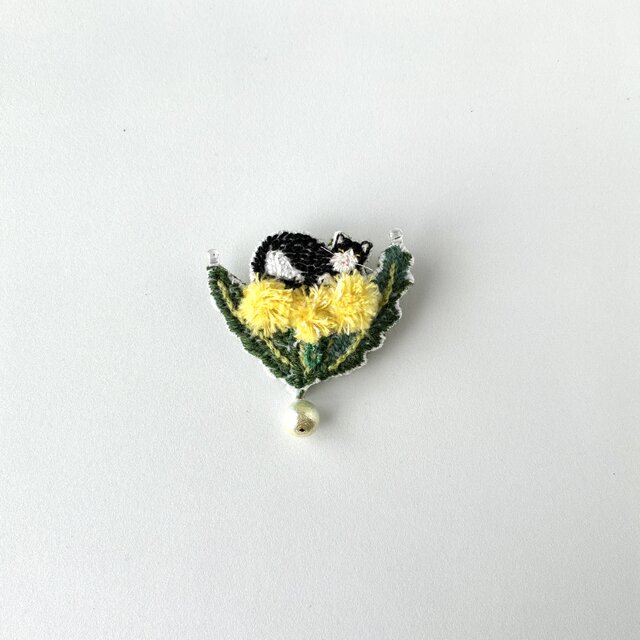 たんぽぽの上で眠るハチワレネコさん 刺繍ブローチ