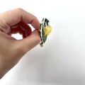 下方には、揺れるほんのりイエローとブルーの軽いコットンパールビーズをつけました。