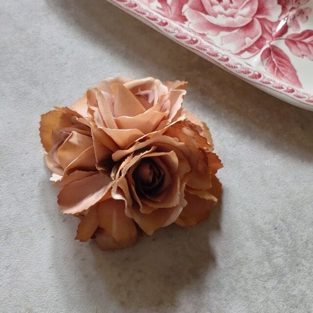 フラワーコサージュ ローズ バラ ■ アンティークカラー 3色展開 ■ ブラウン