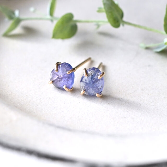 タンザナイトの14kgfスタッドピアス(両耳・ペア)
