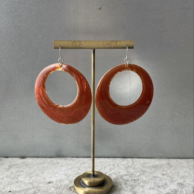 大ぶりなサークルモチーフのUSAヴィンテージピアス。半透明のエナメルから繊細なメタルの模様が浮かび上がる美しいデザインです。存在感がありスタイリングのアクセントにおすすめです。