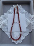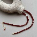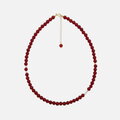 深みのある赤が美しい 高品質なレッドアゲート(6mm)をベースに、淡水パールとゴールドのきらめきをさりげなく添えた、繊細で上品なクリスタルビーズネックレス です。